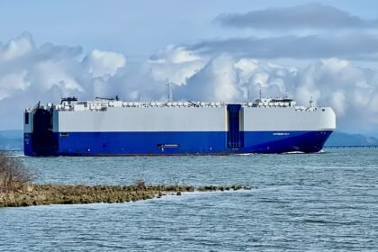 The Hyperion Ray, a 650-foot long vehicle cargo ship, entering the Columbia…