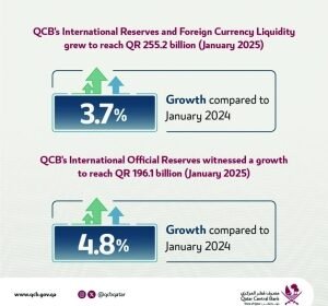 QCB’s international reserves and foreign currency liquidity increase to QR255.166bn in January