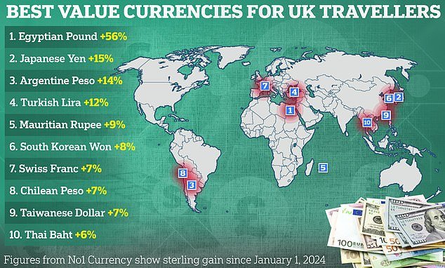 It comes as analysis by No1 Currency found the pound has strengthened against the currencies of 50 out of 54 top travel spots since the start of 2024.