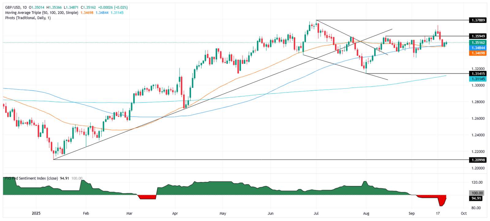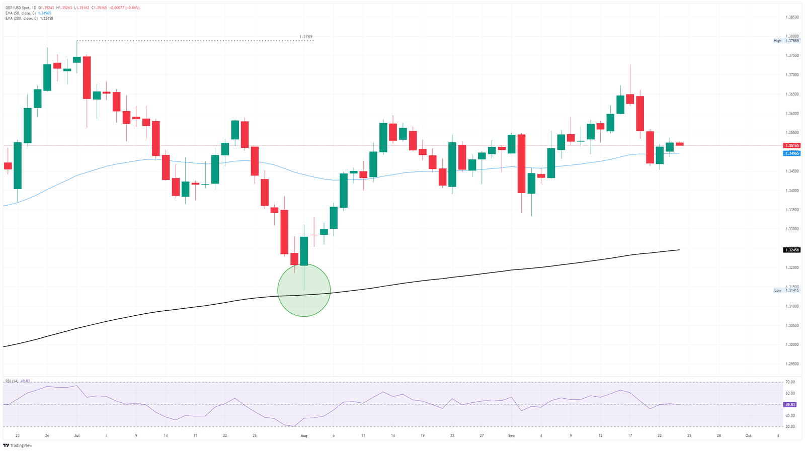 The Pound Sterling (GBP) remains steady during the North American session on Tuesday after business activity on both sides of the Atlantic slows down in September, according to Flash Purchasing Managers Indices (PMI) reports in the UK and the US. GBP/USD trades at 1.3518, virtually unchanged.