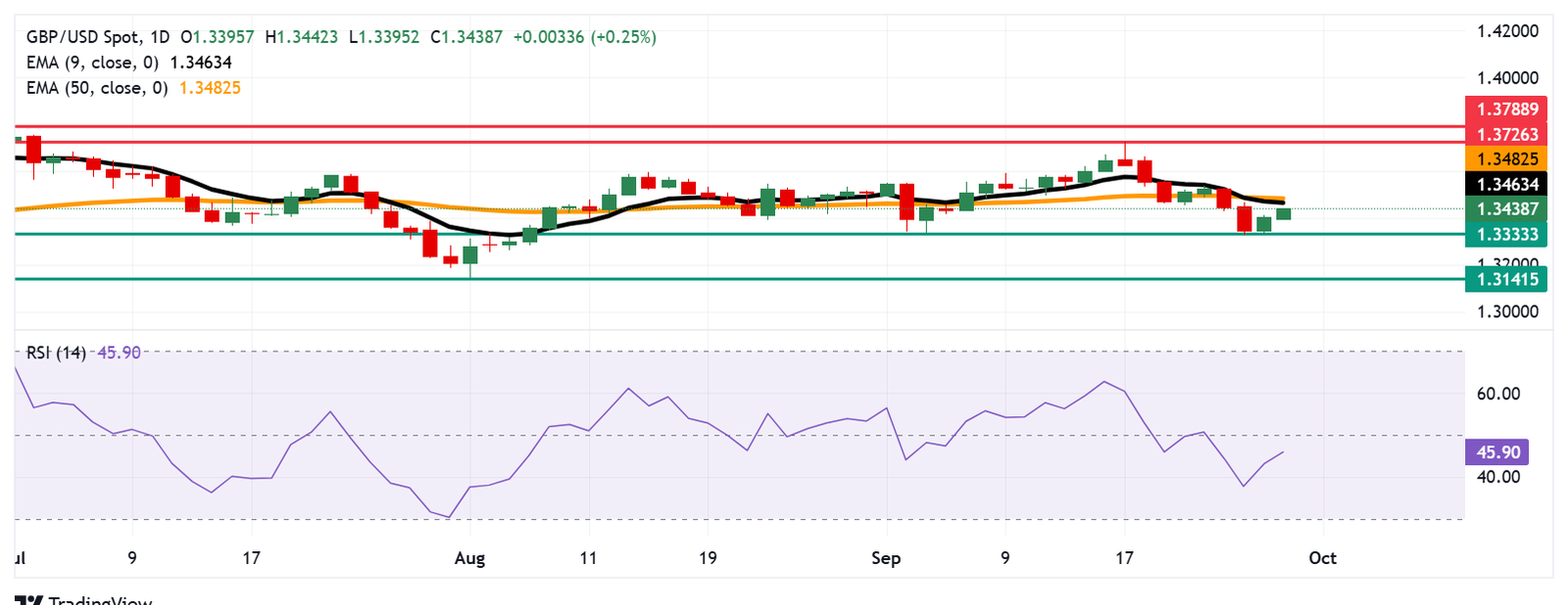 GBP/USD Price Forecast: Rises to near 1.3450, eyes nine-day EMA barrier
