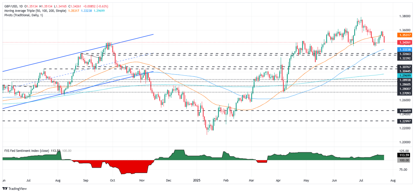 The GBP/USD pair extends the decline to near 1.3490 during the Asian trading hours on Friday, pressured by renewed US Dollar (USD) demand. Traders prefer to wait on the sidelines ahead of US President Donald Trump’s tariff deadline and the Federal Reserve (Fed) policy meeting next week. Later on Friday, the release of the UK June Retail Sales report will take center stage. Read More…
